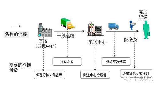 中国的物流行业一直被诟病不已,发展基础太差,尤其是冷链运输,与国外的差距太大,国内也始终没有建立起完整的生鲜物流配送体系。冷链物流的三段,干线运输、仓储和宅配都存在诸多问题,第一是基础设施的不足,全国现有的冷链车辆数量少,仅为日本的一半;第二是冷链成本高,中国生鲜产品的运输保存环节冷链运输占比低,规模效应不突出,市场的冷链运输的供应有限,导致成本过高;第三是冷链运输没有成为行业标准,中国的生鲜产品物流要求低,常温运输为主,产品质量无法得到保证。